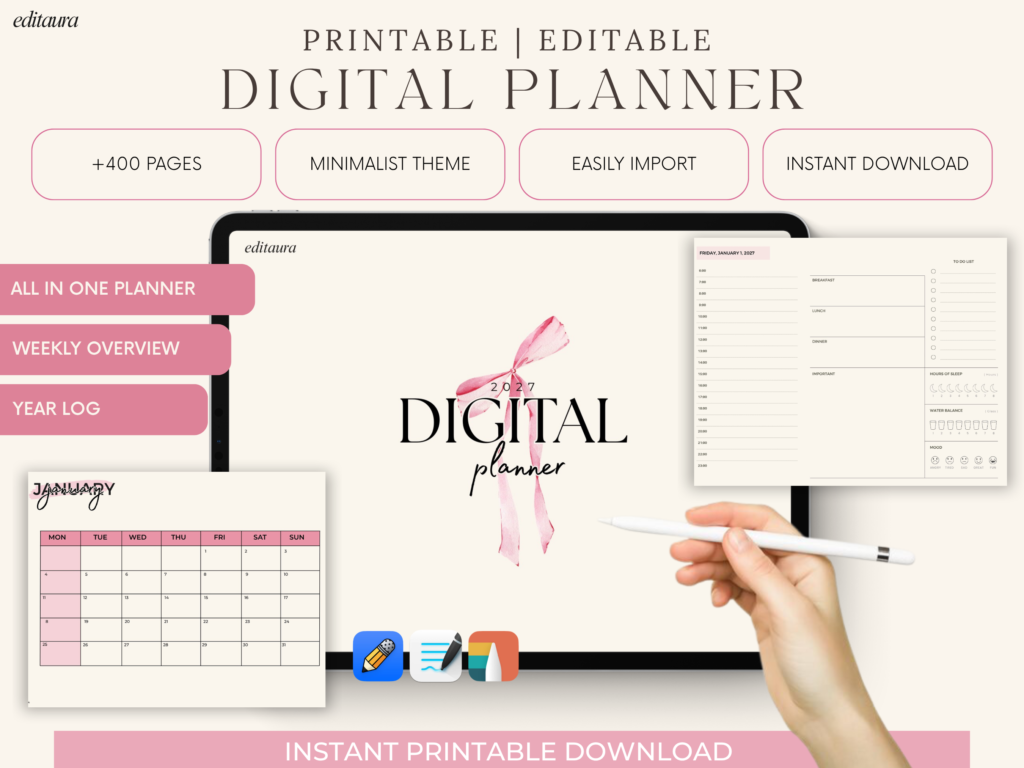 Stay organized and inspired throughout the entire year with this beautifully designed 2027 digital planner. Featuring a clean and aesthetic, this planner is perfect for daily planning, goal setting, and tracking your routines.